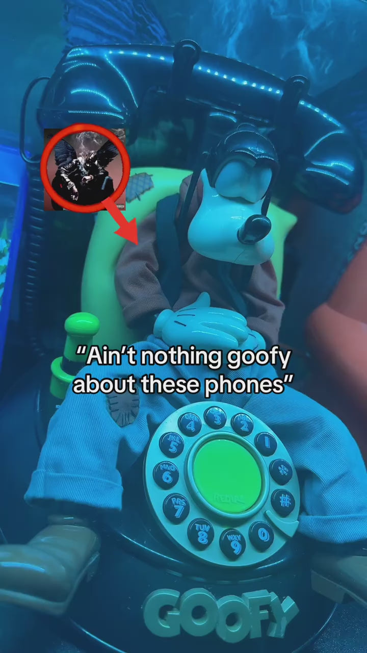 ***Info*** After you put in the batteries, and the phone is good to go, it works like this: Pick up the phone = he opens his eyes and tilts up his head. Put down the down, he closes his eyes, and tilts his head down.
